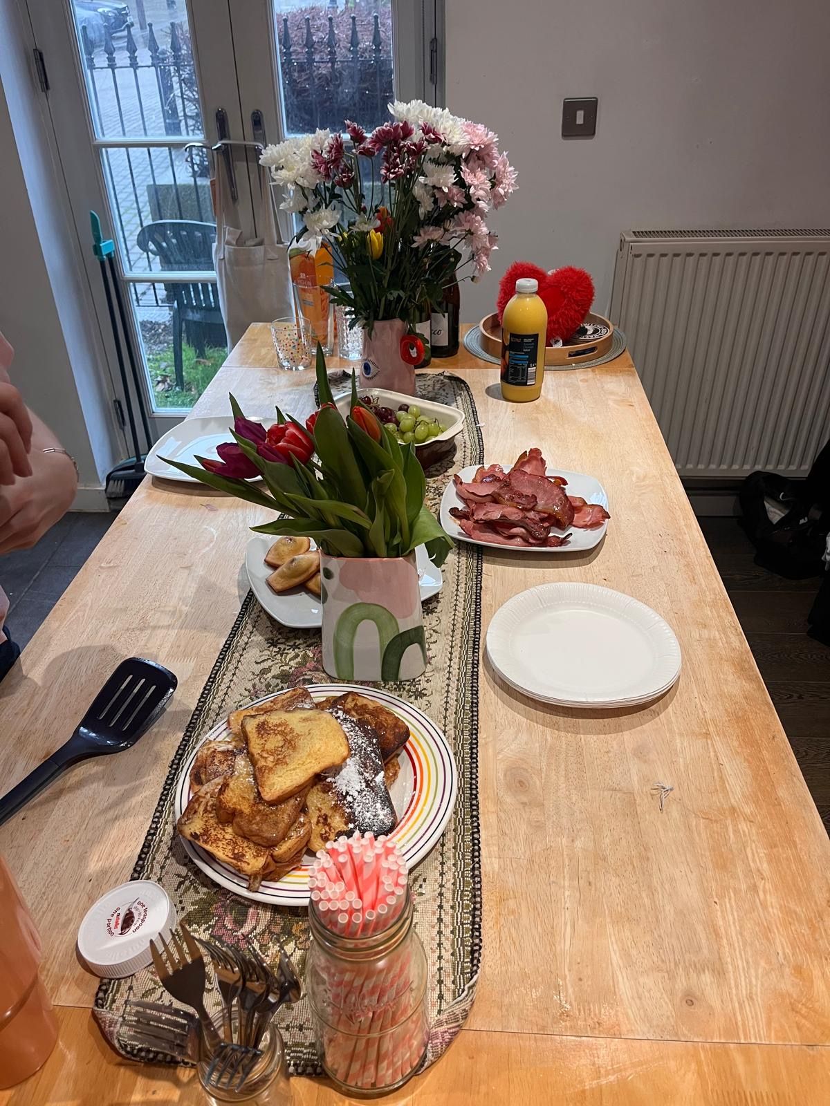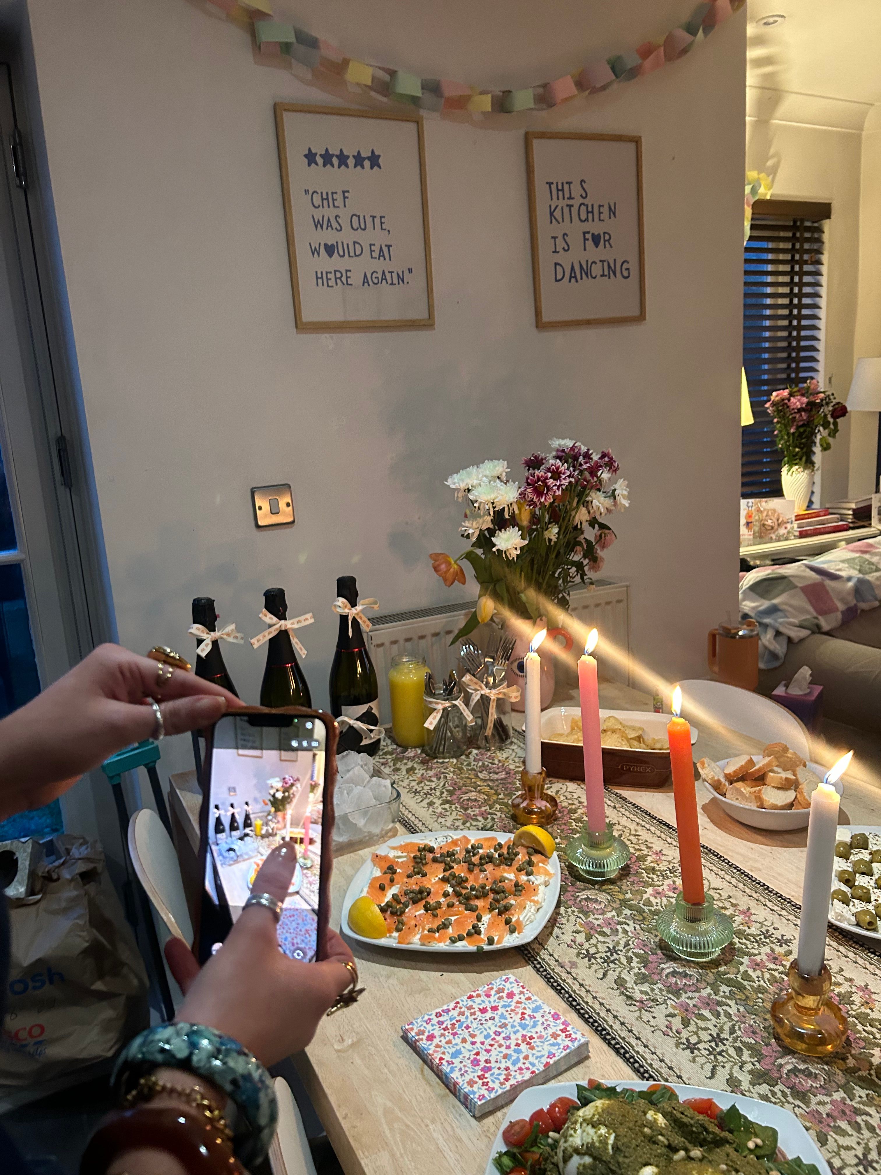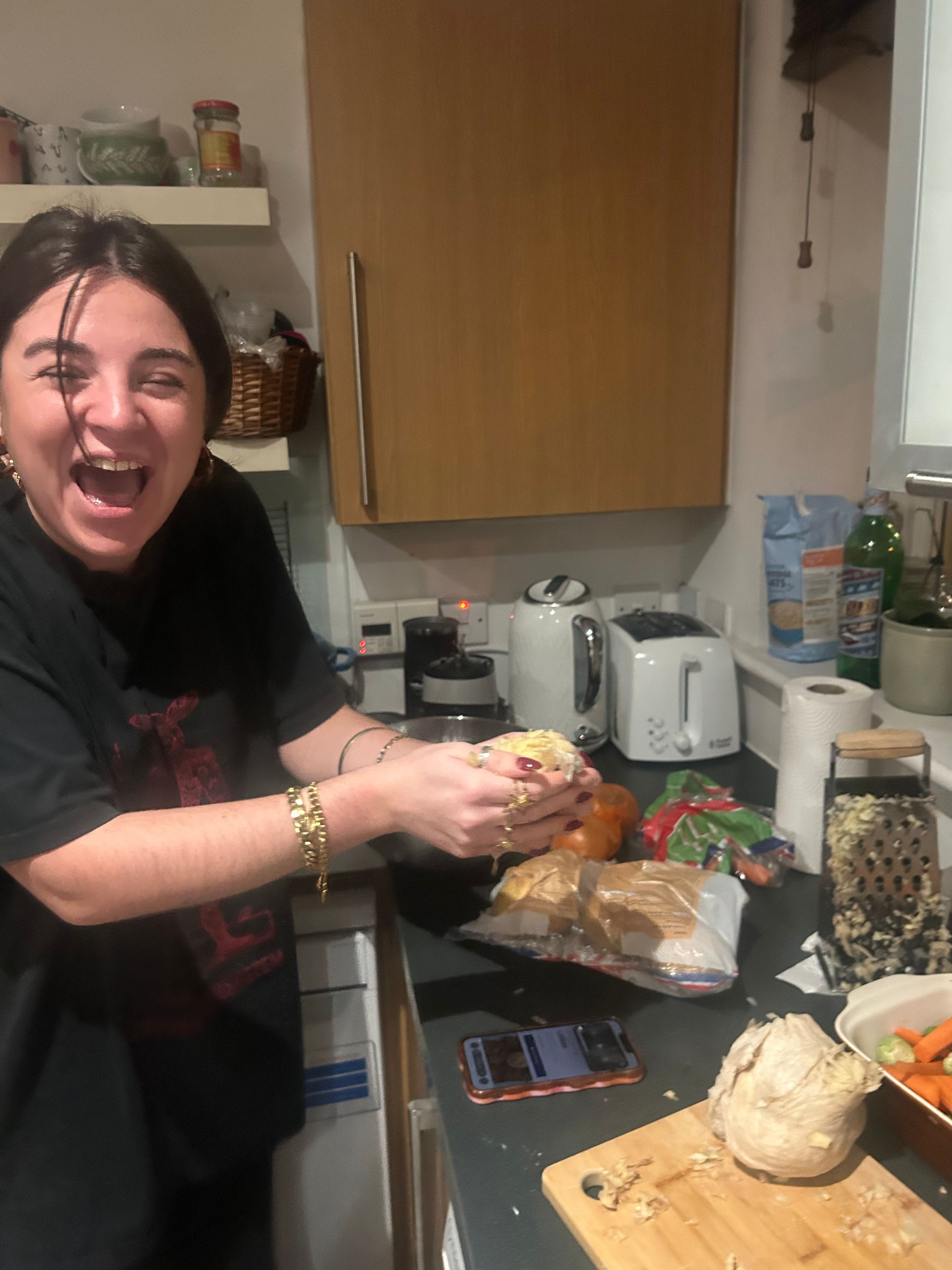 Made a really big purchase this year: a menorah. Cheapest one I could find and not the cutest ever, but my first menorah that I PERSONALLY own, nonetheless. Best Jew in the world, dare I say? Jas and Rithi, my neighbours, came down and lit the candles with me on the first night. And then, oh my gosh, lucky me that Susí was in London during Hanukkah. And even LUCKIER me that Harriet (my flatmate by chance, friend by choice ❤️ ) cooked a full Hanukkah feast for lil ol’ me. When I came home from work that Monday, I found her squeezing out the onions and potatoes to make latkes. We had a true Jewish feast that my ancestors would be proud of, consisting of chicken, veggies, wine, latkes, and challah French toast for dessert.