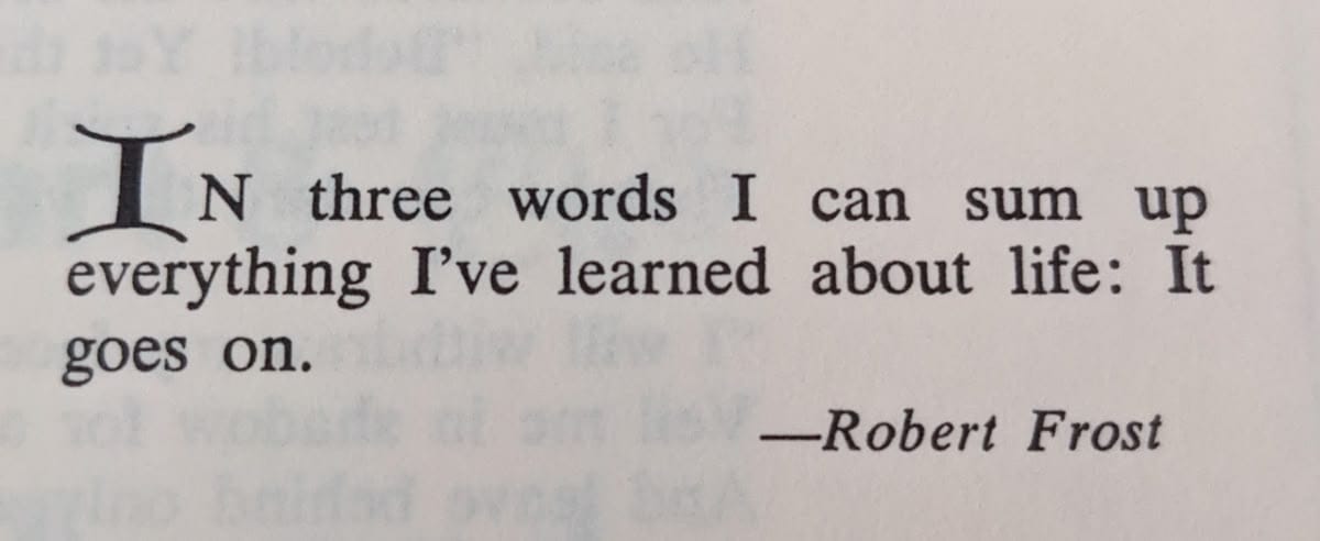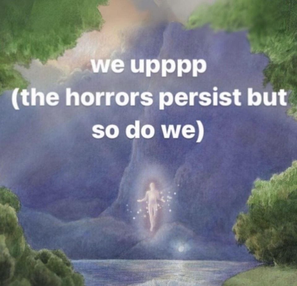 Writing from my personal experience, historically, eventually, time goes on, and with that, things change, even marginally; whether that is for the better, well, that’s always in hindsight, but nothing ever stays fixed. Impermanence is the point. The struggles of the last year plus have sucked hard! But they have also forced me, albeit begrudgingly, to grow and change. Improvement feels harder to achieve than change. Change is inevitable. You can never get to dawn without the dark, and then it’s dawn, but maybe it's cloudy, and then it gets dark again the next day, but the moon is full and bright, and then it’s dawn again and it will always change and be different etc etc ! Are you following this rant.. I am not sure I am…. not even sure what the thesis of this whole thing is, but alas this my newsletter so I’ll just keep writing….